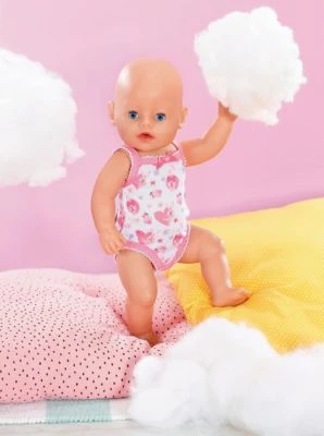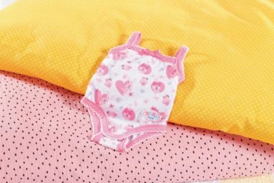 Süßer Body für deine Baby born. Dieses Kleidungsstück darf in keinem Puppen-Kleiderschrank fehlen. Ideal zum Unterziehen und Kombinieren mit anderen Kleidungsstücken. Der Einteiler ist mit einem verspielten Muster versehen und hat eine niedliche Schleife. Im Schritt befindet sich ein Klettverschluss für schnelles An- und Ausziehen. Du erhältst einen Bügel dazu, sodass du den Body angemessen im Schrank aufhängen kannst.