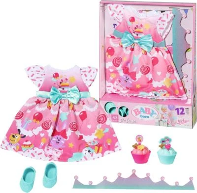 Dieses tolle „Deluxe Birthday“-Spielset aus der „BABY born“-Kollektion von Zapf Creation eignet sich klasse als Geschenk für kleine Puppeneltern. Das tolle Bekleidungsset beinhaltet Schuhe, ein Kleidchen, eine tolle Glitzer-Krone und sogar zwei Cup Cakes.Damit ist für noch abwechslungsreicheren Spielspaß im Kinderzimmer gesorgt!