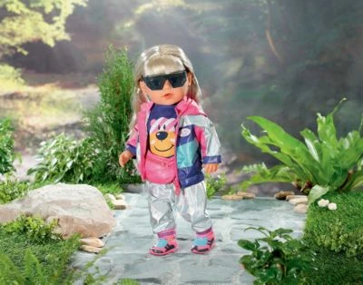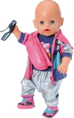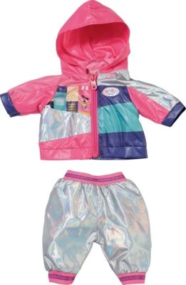 Mit diesem coolen Kleiderset ist BABY born® oder ihre Puppenfreund*in bestens für allerhand Outdoor-Momente ausgestattet. Die lässige Trainingsjacke im modernen Color Blocking Style bietet, wie auch die glänzende Hose, viel Bewegungsfreiheit und wird die kleinen Puppeneltern begeistern. Mit der praktischen Kapuze ist das Puppenkind außerdem vor Wind und Wetter geschützt. Jetzt steht tollen Fahrradtouren nichts mehr im Weg!