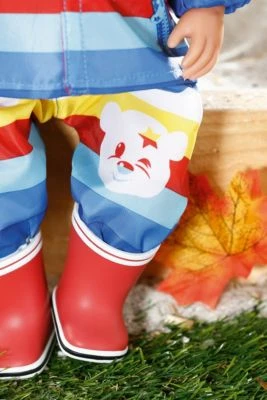 Das BABY born® Kindergarten Outdoor Fun Set von Zapf Creation zeigt sich in einem fröhlichen bunt-geringelten Look. Die Regenjacke ist natürlich mit einer Kapuze ausgestattet und die Regenhose und die Gummistiefel ermöglichen ein lustiges Herumspringen in Pfützen! So kann BABY born® auch an regnerischen Tagen mit ihrer Kindergarten-Gruppe zum Spielen nach draußen gehen.