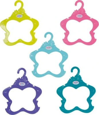 Ordnung im Kleiderschrank sorgt dafür, dass stets ein optimaler Überblick geschaffen wird. Dafür sind die Kleiderbügel von Zapf Creation ideal geeignet. Insgesamt fünf Stück in bunten Farben enthält dieses Set. So kann BABY borns Kleider ordentlich und knitterfrei aufgehängt werden.