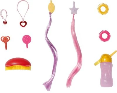 – mit Trinkflasche, Haarbürste, Styling-Accessoires und je 1 Freundschaftsbändchen für Kind und Puppe
