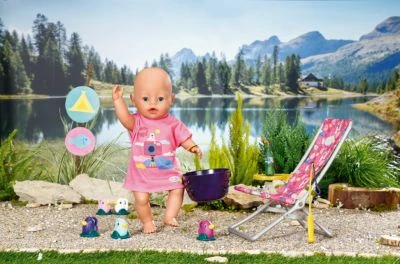 Mit dem BABY born® Weekend Fischen hat die Lieblingspuppe alles, was sie für einen Angelausflug braucht. Im Angler-Outfit macht sie es sich im Liegestuhl bequem und angelt nach den Enten. Auch eine Erfrischung hat sie natürlich dabei.